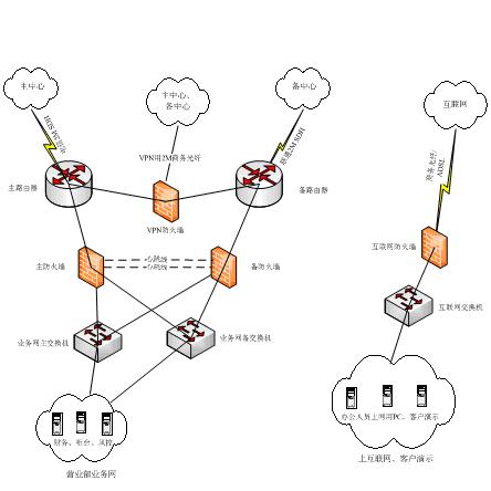 所有的系统均安装在虚拟环境,由两台服务器作互备,通过虚拟化的平台,安装营业部需要的windows与linux操作系统,采用虚拟化平台,管理简单,备份方便,可以进行灵活的增加与减少应用系统,可以由总部统一使用虚拟化管理中心来控制。 通信系统:营业部通过公司内部广域网(两条地面数据线路,由两家不同的运营商提供的通信介质)连接公司总部的信息系统,VPN专用互联网线路可为地面通信线路中断后,提供第二备份通信通道。三种通信方式分别接入公司总部的主中心、同城灾备中心、异地灾备中心。上网用互联网线路提供办公上网服务和为客户演示网上交易系统。同时鉴于营业部不为客户提供现场行情和交易服务,故技术方案中不再提供卫星小站。通讯系统具有高可靠性和高可用性。